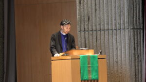 この日の聖句「若き日にあなたの造り主を心に刻め」(コヘレトの言葉12章1節a )が朗読され、チャプレンによる説教が行われました。毎日チャペルに足を運び、聖書の言葉に触れてきた学生たちに向けて、「心に残った聖書の言葉や、気になった箇所はあったでしょうか」と問いかけがなされ、一年の歩みを振り返る時間となりました。